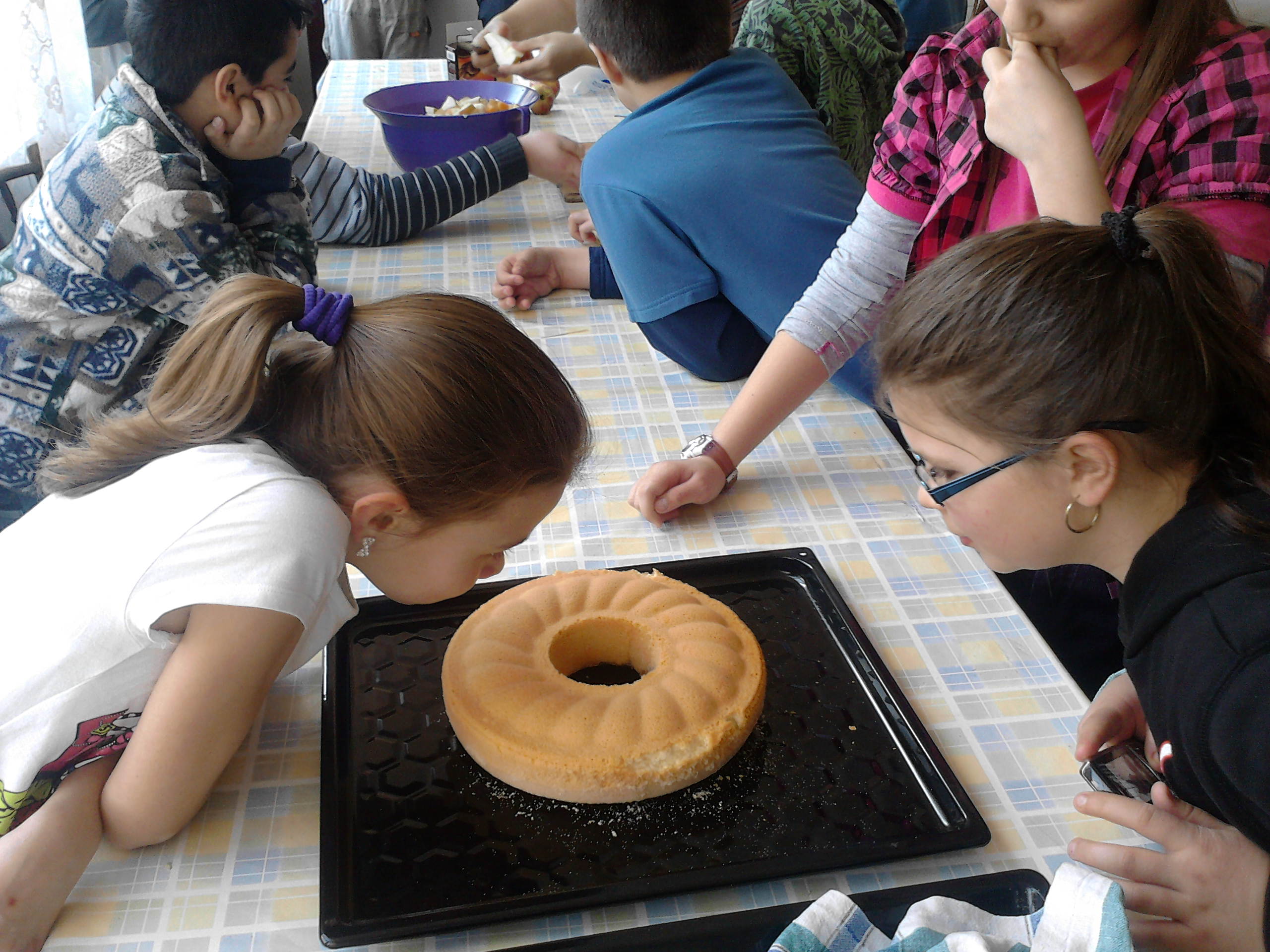 Veľká noc sa blíži. Je na čase pripraviť sa na pečenie dobrôt. Moji piatačikovia nezaháľajú a pripravujú sa na pomoc maminkám pri pečení. Spoločne si upiekli bábovky a spolu s Veronikinou maminkou pripravili aj ovocný šalát. Veď nie len maškrtami je človek živý. Veronikina maminka nám ukázala, že maškrtou môže byť aj vitamínová bomba. Privítala medzi nás s taškou plnou ovocia, ktoré jej piatačikovia pomohli očistiť a pokrájať. Dochucovalo sa jogurtom a s chuťou zjedlo. Len matne si spomínam, že na stole bola aj bábovka, takou rýchlosťou zmizli plody našej práce. Ďakujeme mamina, ktoré nám pomohli.